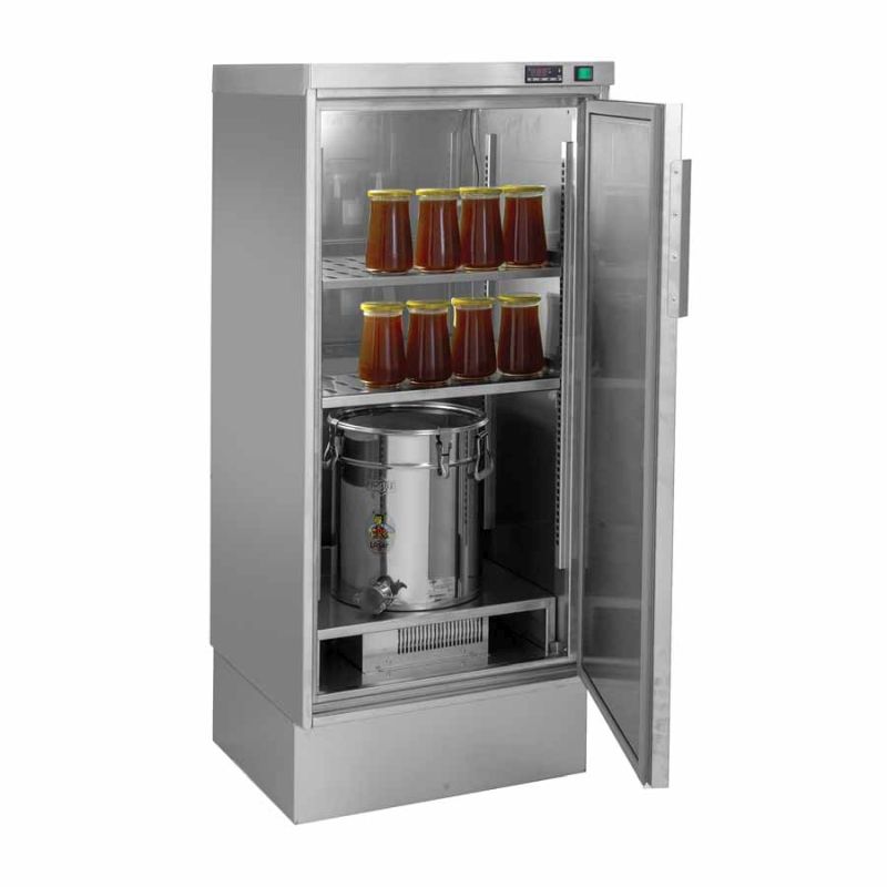 L'armadio per liquefazione del miele Logar è pensato per la semplice e delicata fluidificazione del miele cristallizzato in contenitori e vasetti. L'apparecchio è stato sviluppato per l'uso regolare in apicoltura e offre un comando intuitivo nonché un riscaldamento efficiente e uniforme mediante circolazione dell'aria.