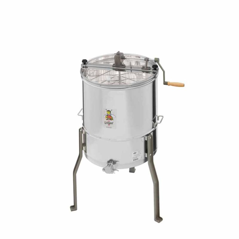La centrifuga per 4 telai Logar con azionamento manuale offre un design robusto e funzionalità studiate per l’apicoltore esigente. L’azionamento manuale è alloggiato in un robusto alloggiamento metallico con folle e freno di richiamo per un funzionamento sicuro e controllato. La centrifuga è di tipo tangenziale e permette un’estrazione efficiente del miele senza danneggiare i telai.