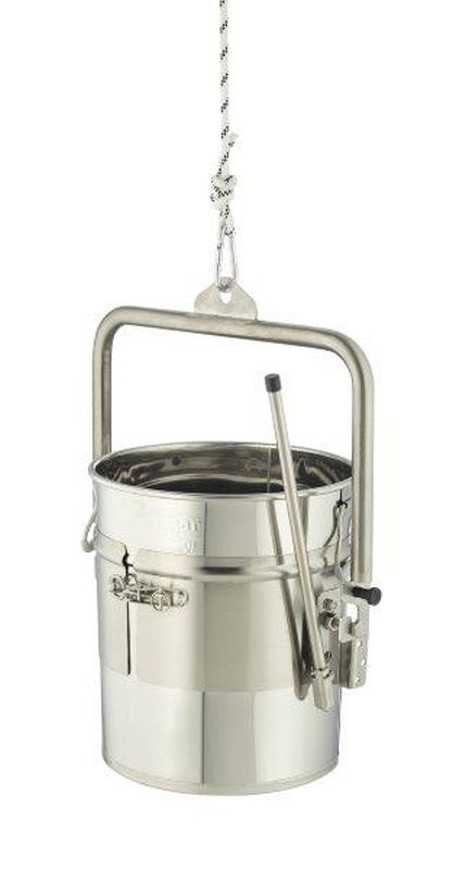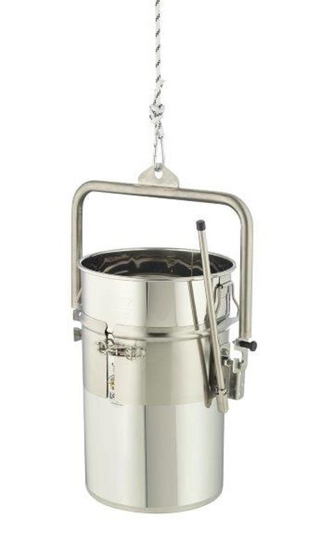 Il dispositivo è dotato di una robusta cinghia di serraggio e di una traversa. Permette di inclinare e svuotare il contenitore in modo controllato senza ausili di sollevamento complessi, riducendo l'affaticamento fisico. Grazie alla costruzione solida in acciaio inossidabile è durevole, igienico e facile da pulire — ideale per l'uso in apicoltura.