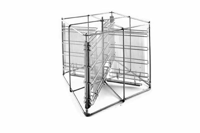 Le tasche portafavi sono realizzate con aste reticolate verticali con passo ottimizzato in modo da non danneggiare né i favi né i telai durante l'estrazione. Sono collegate tra loro tramite un meccanismo speciale. Le tasche portafavi impediscono l'accumulo di miele durante la centrifugazione, pertanto i telai risultano completamente asciutti dopo l'estrazione!