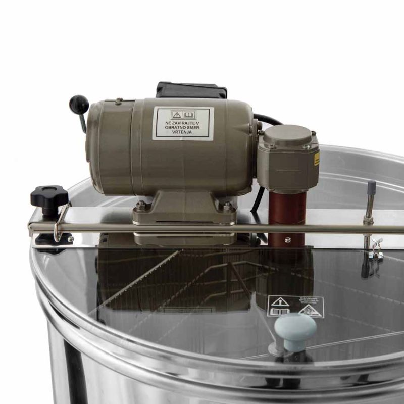 Estrattore da 3 telaini Logar con motore 110 W / 230 V. L'estrattore è dotato di un interruttore di sicurezza integrato che spegne automaticamente il motore all'apertura del coperchio. Il rubinetto di scarico in acciaio inox è saldato nel punto più basso possibile in modo che tutto il miele possa defluire. Tutte le parti a contatto con il miele sono realizzate con materiali idonei per alimenti.
