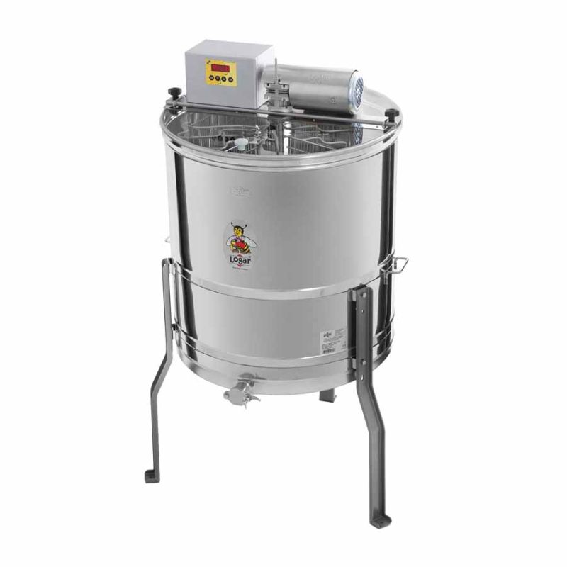 Un importante vantaggio di questo estrattore Logar è la grande capacità del cestello nonostante il diametro relativamente ridotto della vasca di 63 cm. Il controllo totalmente automatico consente l'esecuzione autonoma dell'intero processo di estrazione; l'operazione avviene comodamente tramite una tastiera a membrana. È possibile impostare e memorizzare fino a 8 programmi, ciascuno con fino a 8 tempi, direzioni e velocità di rotazione. I programmi base sono preimpostati e possono essere modificati in qualsiasi momento.