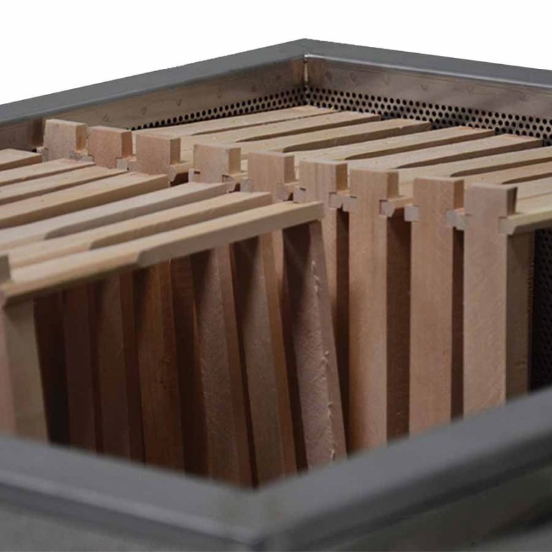 - Uso: riempire il contenitore con acqua, posare i telai nel cestello perforato, riscaldare con bruciatore a gas o combustibile solido (bruciatore a gas non incluso).