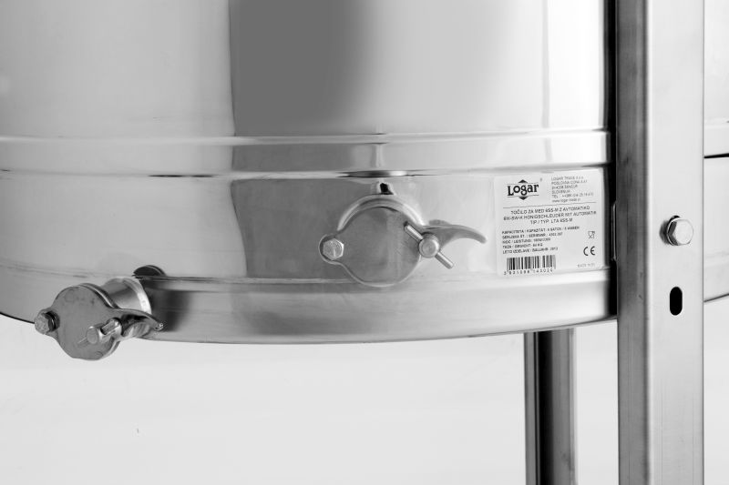 Eine Honigschleuder der Marke Logar – Synonym für Langlebigkeit, innovative Lösungen, die die Arbeit erleichtern, zuverlässigen Service und Ersatzteile.